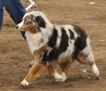 Blue merle female toy australian puppy. She is so outgoing and never met a stranger. This litter is one of my favorite litters we have had they are all so sweet and friendly. She loves to play and also just be held. She is up to date on her vaccs, dewormings, and vet checked. If your interested in her please tell us about the home she will have with you as well as a vet ref. so we can ensure a