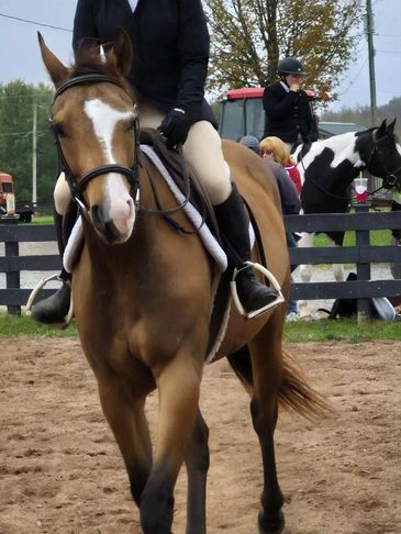 Dove is a 10 yr old Qh cross mare. Dove is a very sweet mare that loves treats! She is used for some walk lessons and also wtc.